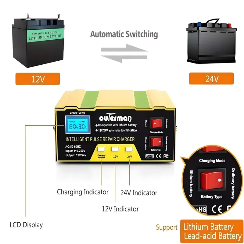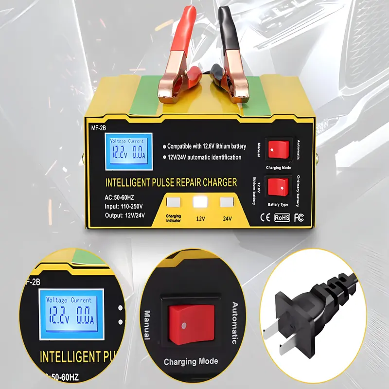 Zaboravite stres zbog ispražnjenog akumulatora baš kada vam najviše treba vozilo. Naš automatski punjač akumulatora puni brzo, sigurno i pametno, prepoznaje stanje baterije i sam bira optimalan režim za 12V ili 24V, pa bezbedno obnavlja energiju automobilu, motociklu, kamionu ili čamcu. Jasan LCD ekran prati napon, struju i napredak punjenja.