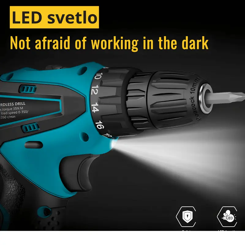 Bežična bušilica 12vSnaga i kontrola u dve brzine ⚙️