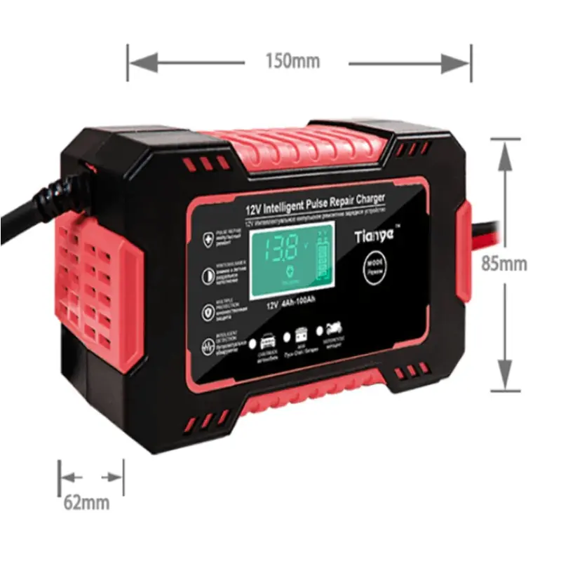 Ugrađene zaštite uključuju obrnut polaritet, kratki spoj, preopterećenje, prenapon i zaštitu od pregrevanja. Kada je baterija puna, uređaj se automatski isključuje i prelazi u režim održavanja; nema varničenja, nema nepotrebnog pregrevanja. Kućište je izrađeno od kvalitetnih materijala, a elektronski sklopovi su projektovani za stabilan rad i dugotrajnu pouzdanost. Vaš akumulator je u sigurnim rukama. ✨