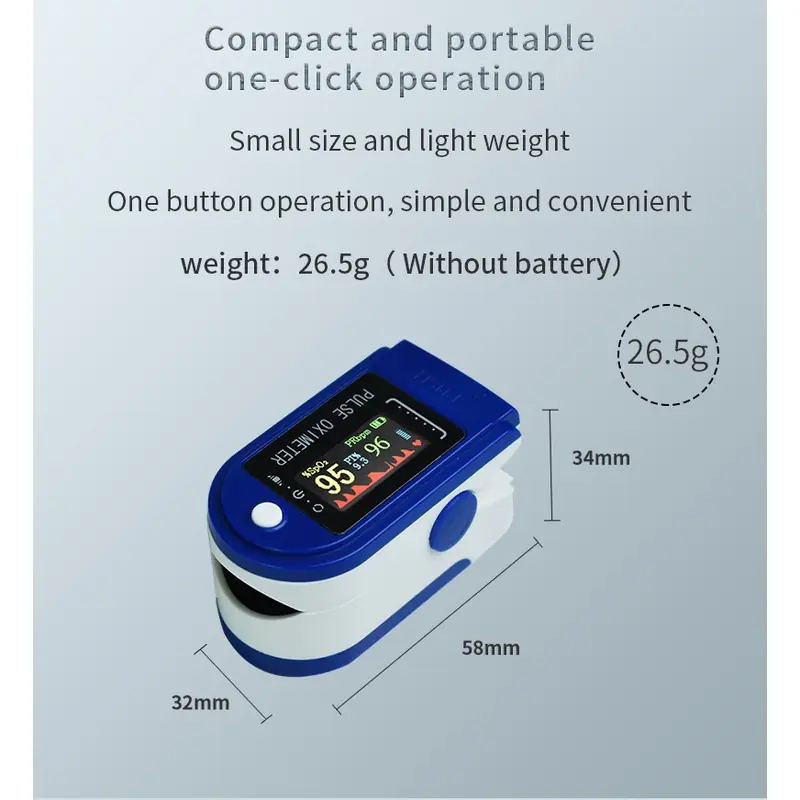 Praktičan i jednostavan za upotrebu, pulsni oksimetar omogućava brzo očitavanje zasićenosti kiseonikom u krvi i pulsa, kada god vam je potrebna dodatna kontrola zdravstvenog stanja. Idealan je za kućnu upotrebu, sportiste, starije osobe i korisnike kiseoničke podrške, uz jasan OLED ekran i pouzdana merenja u samo nekoliko sekundi.