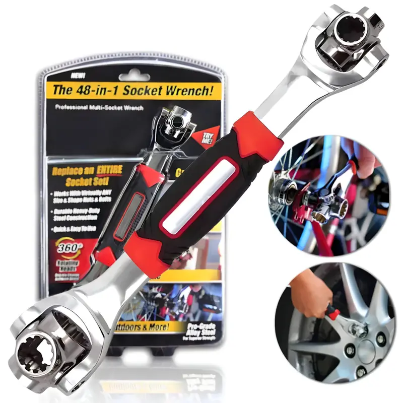 Zaboravite na gomilu rasutih alata i potragu za pravom merom. Uz univerzalni ključ 8 u 1 imate 8 najčešćih veličina nadohvat ruke, rotirajuću glavu od 360° i robustan čelični sklop koji olakšava popravke u kući, radionici ili autu. Uštedite vreme, prostor i živce – spremni ste za svaku situaciju.