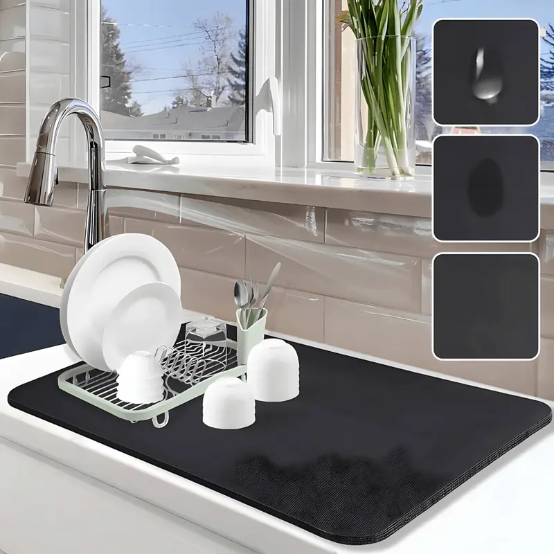 Uživajte u suvim i blistavim sudovima bez mrlja i vlažnih tragova na radnoj površini. Ovaj set od dve podloge upija vodu izuzetno brzo, čuvajući kuhinjske elemente i skraćujući vreme sušenja čak do 7 puta. Zahvaljujući neklizajućoj bazi i elegantnom crnom dizajnu, podloge su istovremeno praktične i moderne. Idealne su za male kuhinje, ali i za sve koji žele uredan, higijenski i funkcionalan prostor. ✨
